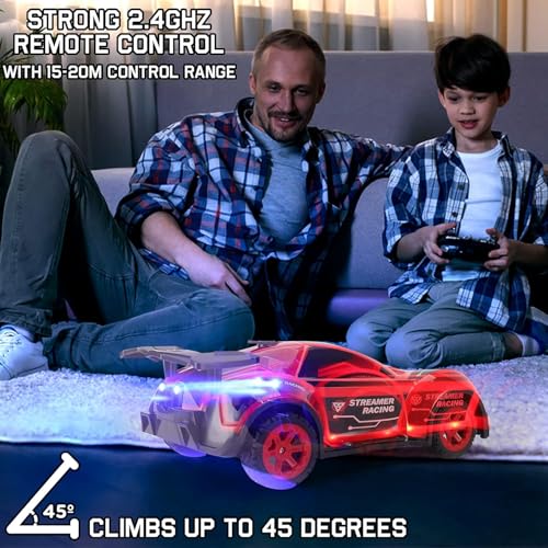 - سيارة لعبة تعمل بجهاز تحكم عن بعد بعوادم البخار ثنائية الدفع: أضف الماء على سيارة سباق الضباب لإطلاق تيار العادم الخلفي أثناء القيادة؛ سيارة تعمل بجهاز تحكم عن بعد بمقياس 1:16 تتسلق حتى 45 درجة، عجلات متينة، وتتميز بـ 5 أوضاع إضاءة وامضة وأضواء LED ساطعة