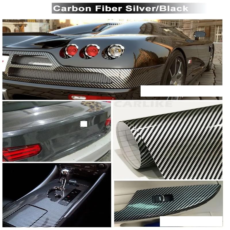 لفافة من فينيل الياف كربون ذاتي اللصق مقاوم للماء للاجزاء الداخلية من الموتوسيكلات والسيارات والكمبيوتر (اسود سلفر، لامع ، طول 5 متر ،عرض 5سم) - من كابرمصر 2020