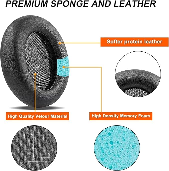 - سهل التركيب: مصممة لملاءمة سلسة، يمكن تركيب وسائد الأذن هذه بسهولة على سماعات انكر ساوند كور Q10 Q30 وQ35، مما يجعلها خيار بديل مريح.