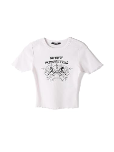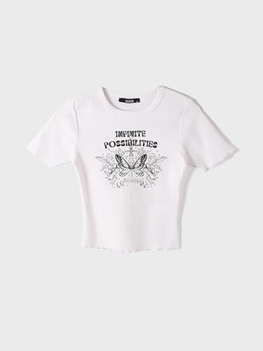 تيشرت بأكمام قصيرة ورقبة دائرية ضيقة ومزين بطباعة للنساء من ال سي وايكيكي