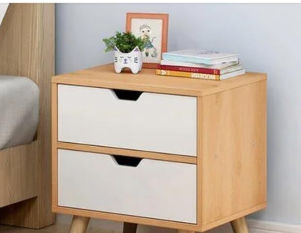 منظم تخزين خشبي بطبقتين مع ادراج، 25 سم × 15 سم × 26 سم، ابيض وبني فاتح، حامل منضدة الزينة
