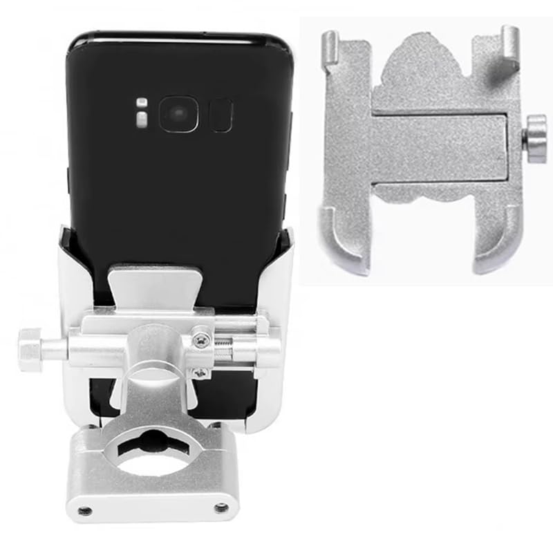 حامل موبايل هاتف للدراجة النارية والموتوسيكل، حامل عالمي متين معدن قوى ضد الصدم يثبت على الجادون قابل للتعديل والدوران (جادون - فضى ) - من كابر تريد