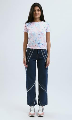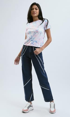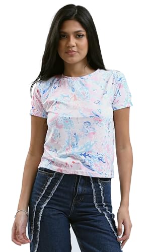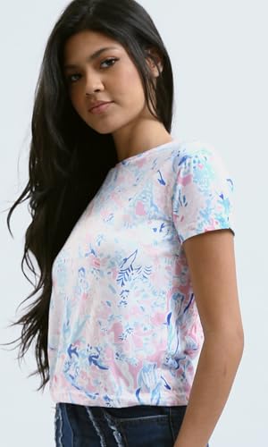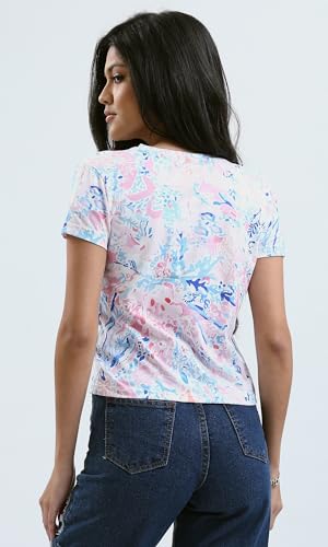 تيشرت بأكمام قصيرة وألوان باستيل مزين بنقشة للنساء من ريفين