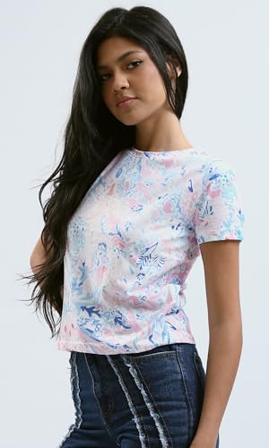 تيشيرت بأكمام قصيرة منقوش بألوان الباستيل