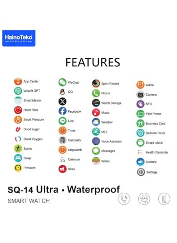 ساعة يد ذكية بشاشة اموليد، مدة تشغيل بطارية 10 أيام وشحن لاسلكي مع 3 أساور من هاينو تيكو، (لون فضي) SQ-14