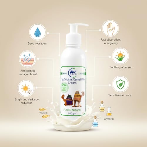 لبن الجمل الأصلي، مرطب ومكافح للتجاعيد بتركيبة فيتامين E والبانثينول، خالي من البارابين والسليكون 200 جرام برائحه المسك