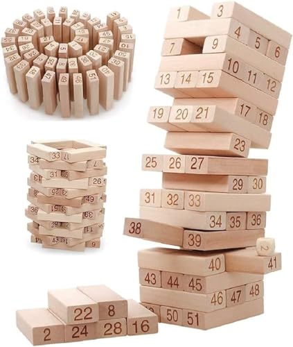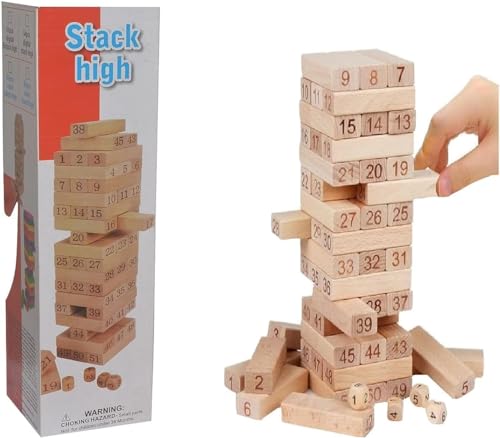 لعبة ستاك هاي من Next Store بناء برج بباركيه خشبي كلاسيكي ومرقم للاطفال وتلعب بلاعبين او اكثر 54 قطعة للبالغين