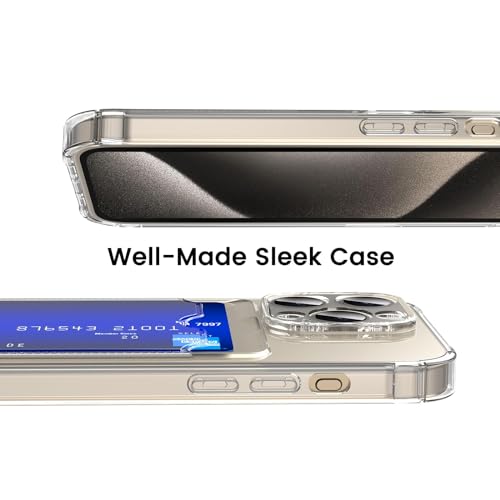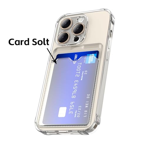 جراب حماية من السيليكون بتصميم محفظة لموبايل ايفون مع جيب لحمل بطاقات الائتمان اولنيلوك رفيع ومتين بفتحة للبطاقات شفاف لـ 14 برو ماكس