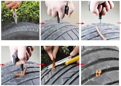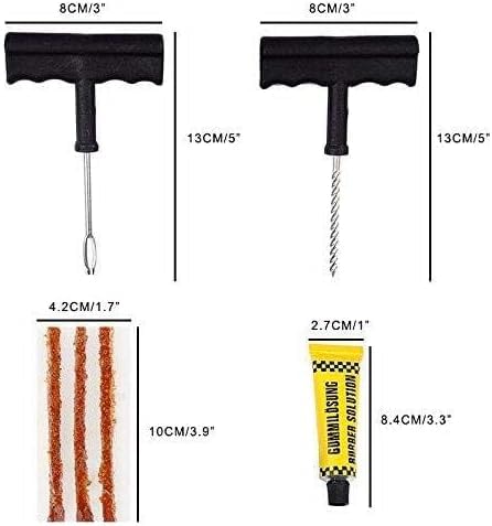 - تتضمن المجموعة المكونة من 6 قطع مسمار للإطارات وأداة إدخال وإسمنت مطاطي (انبوبة لصق) و3 شرائط قابس.