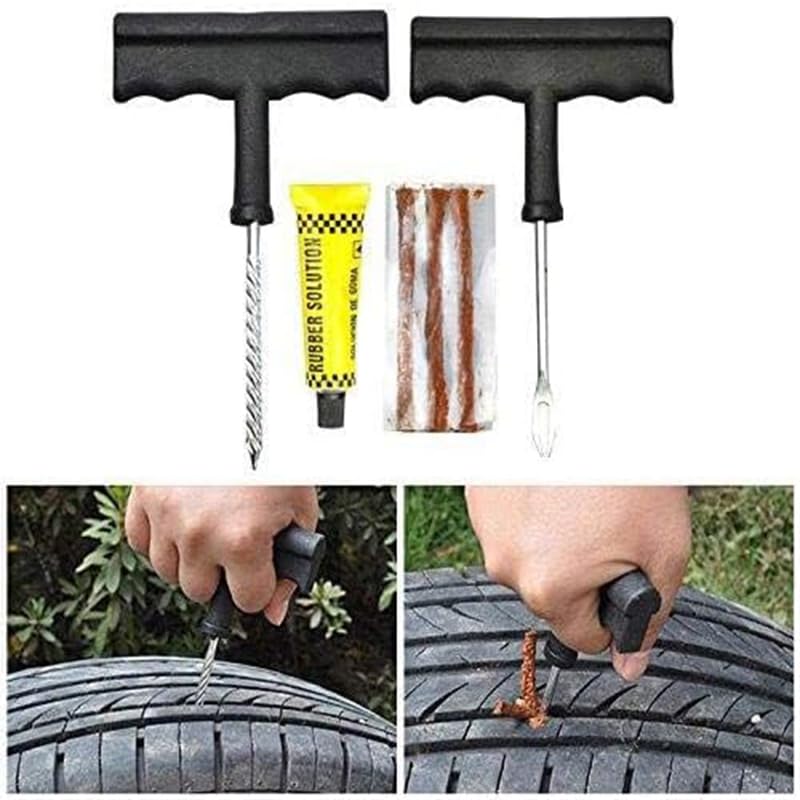 - لا تكتمل مجموعة الطوارئ التلقائية بسيارتك بدون مجموعة إصلاح الإطارات، مقابض على شكل حرف T سهلة الاستخدام تجعل توصيل الإطارات سريعًا وفعالًا.