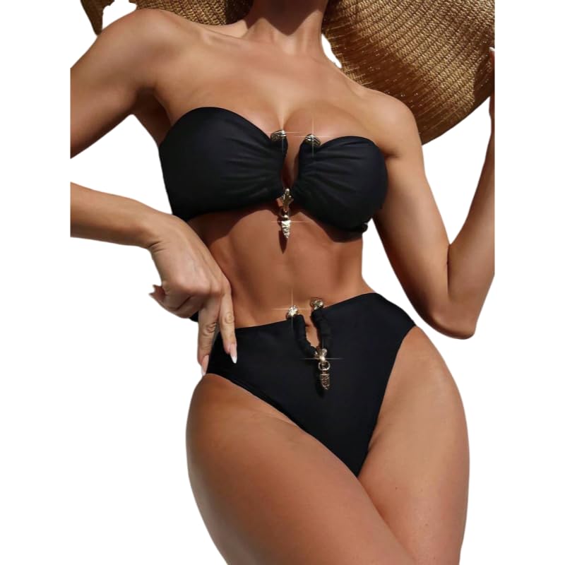 طقم بيكيني بوش اب مثير بدون حمالات وبخصر مرتفع للنساء، مصنوع من البوليستر بطبعات زهور ونمط مخطط ومزود بحشوات قابلة للإزالة، سريع الجفاف للصيف والشاطئ والعطلات من جولينياو