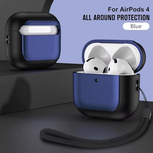 حافظة حماية من فكرة لسماعات ايربودز 4 ابل، غطاء مصنوع من الجلد الصناعي باللون الأزرق
