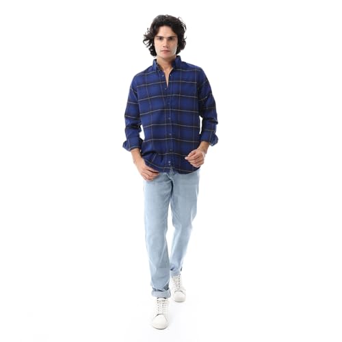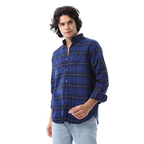 قميص بتصميم غربي بأكمام طويلة ونقشة مربعات للرجال من اندورا