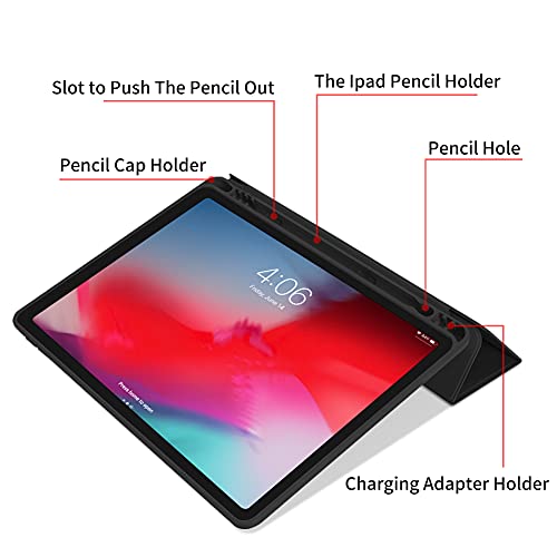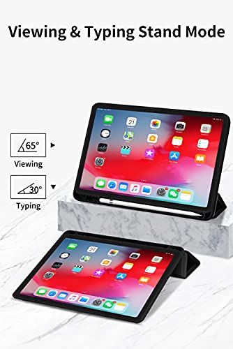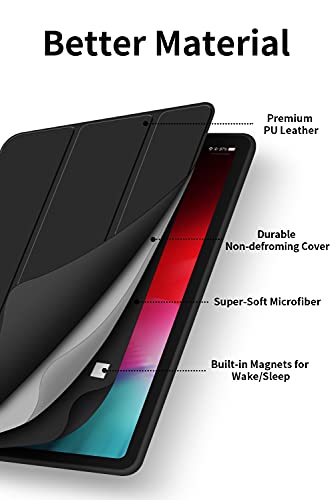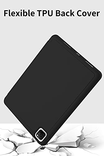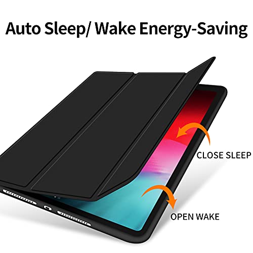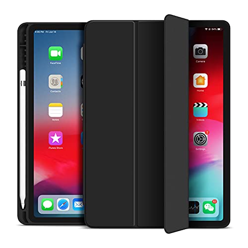 جراب حماية اي باد برو 12.9 2021 الجيل الخامس مع حامل قلم من فاجفيو، اي باد برو 12.9 2020 الجيل الرابع، جراب حماية ذكي مرن (ساعة منبه/ نوم)، غطاء خلفي ناعم من البولي يوريثين الحراري، أسود