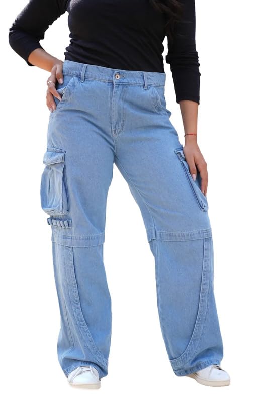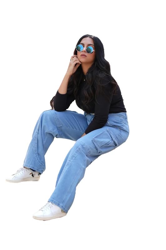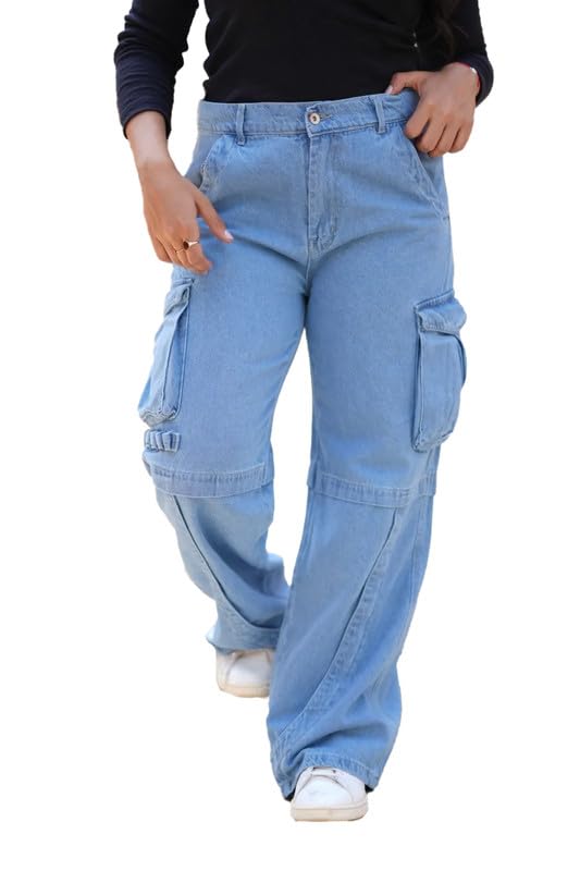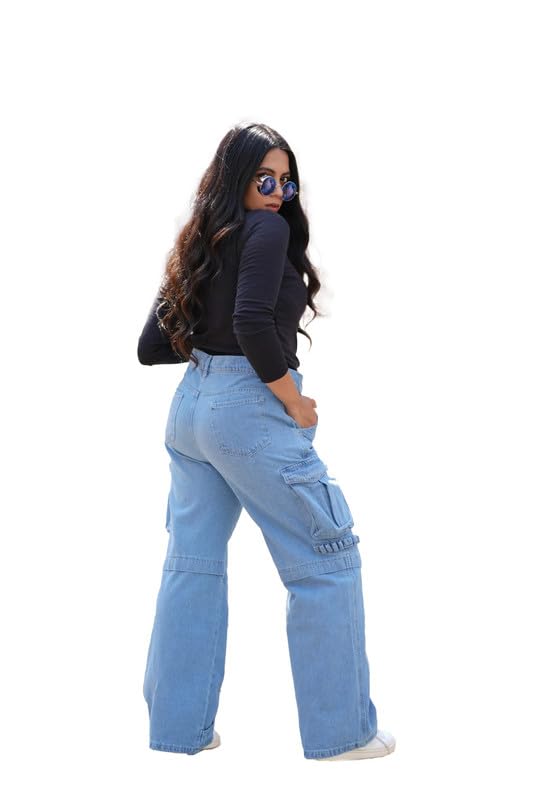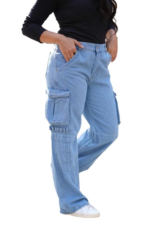 Mamilly jeans بنطلون كارجو هاي ويست جينز بجيب من الجنب نسائي OB-653-Parent