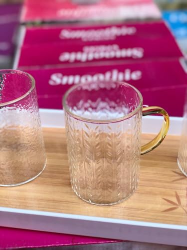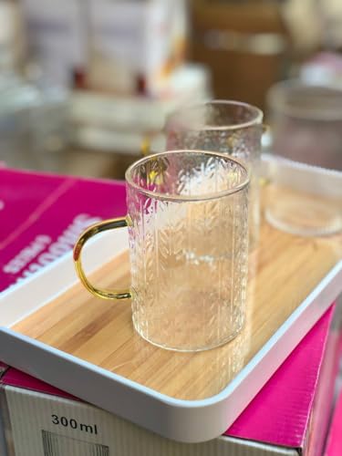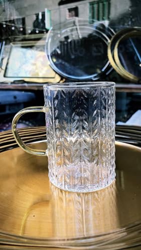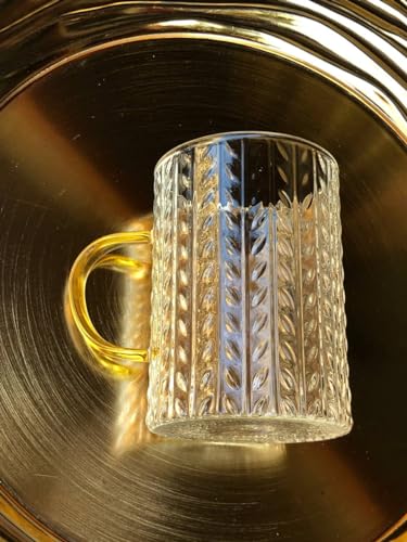 مج زجاجي منقرش للحرارة على النار بسعة 320 ملي وشكل جولد يدوي راقي