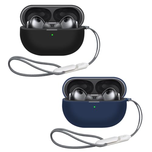 حافظة سماعات اذن متوافقة مع سماعات هواوي فري بادز برو 4، غطاء حماية كامل ناعم من البولي يوريثين الحراري المقاوم للماء مع سلسلة، خطاف محمول مقاوم للصدمات والخدوش (اسود + ازرق)