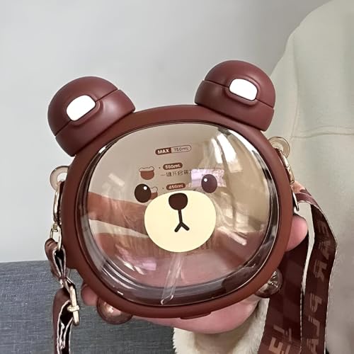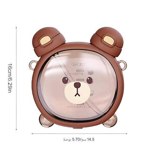 زجاجة مياه للاطفال - على شكل دب كرتوني، تصميم فم مزدوج مانع للتسرب، حاوية مشروبات محمولة 750 مل للمدرسة والاماكن الخارجية واحتياجات الترطيب اليومية