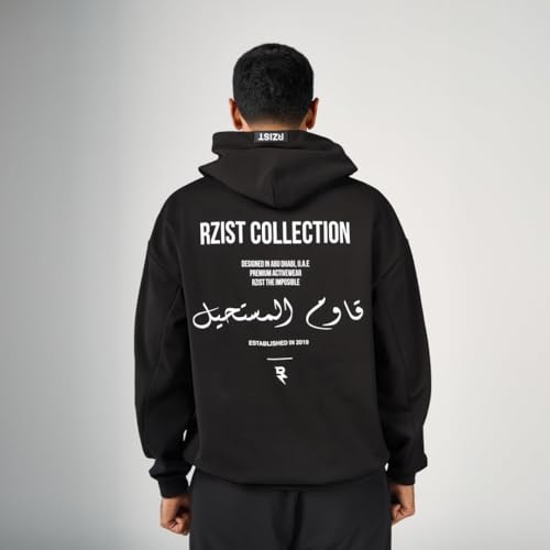 سويت شيرت بغطاء راس كبير الحجم للبالغين من الجنسين RZIST The Impossible من ار زد اي اس تي - اسود (عبوة من قطعة واحدة)