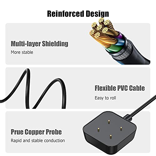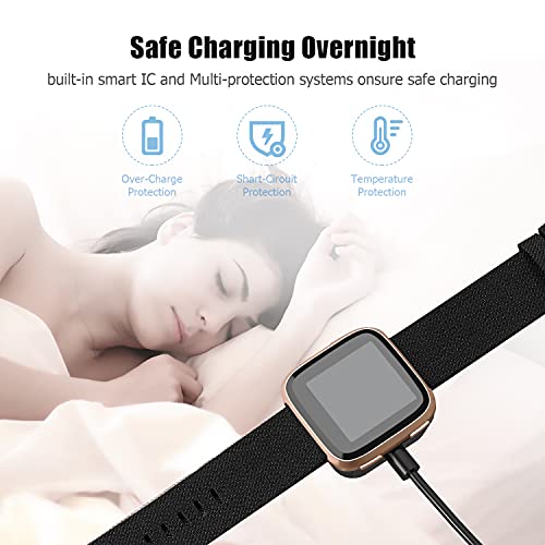 - شحن آمن وسريع: يحتوي كابل الشحن المتوافق مع كابل فيتبيت فيرسا 3، على منظم جهد وواقي درجة الحرارة من الداخل، لحماية ساعة فيرسا 3 الخاصة بك من التلف بسبب التيار الزائد عند توصيله بمصدر الطاقة. تضمن لك تقنية اي سي الذكية الموجودة بكابل الشحن الخاص بنا عملية شحن سريعة ومستقرة.