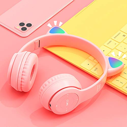 - تصميم لطيف على شكل أذن قطة مع إضاءة ليد 【تصميم لطيف مزين بأذني قطة مع أضواء ملونة】سماعات رأس لاسلكية تتميز بتصميم مزين بأذني قطة وأضواء ملونة فاخرة، كما أنّها تتميز بألوان فريدة تجعلها مثالية للأطفال والكبار.