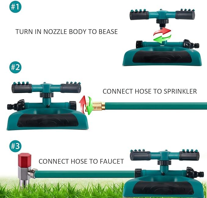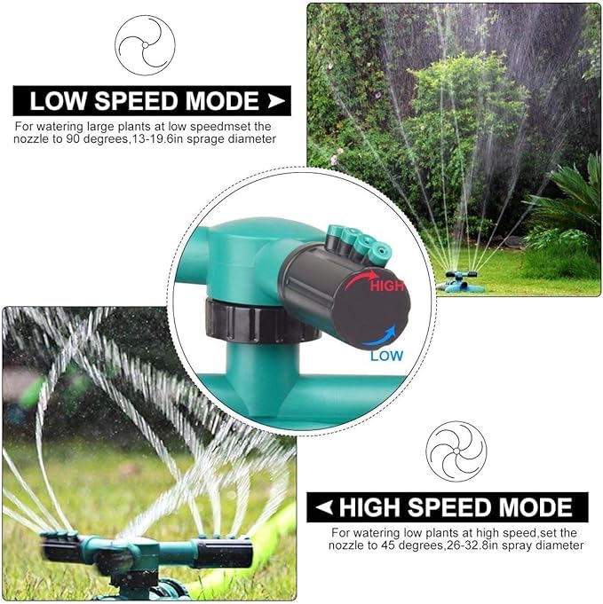 - جودة ممتازة - ثلاثة أذرع + رشاش عشب دوار من بلاستيك ABS، حركة دوران 360 درجة، سقي فعال وسريع يوفر تغطية أفضل مما يوفر لك الوقت والماء.
