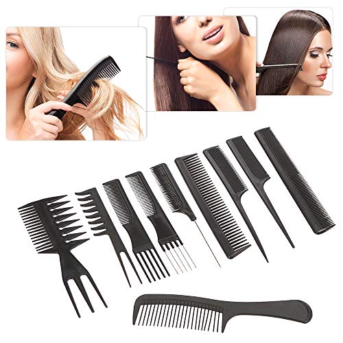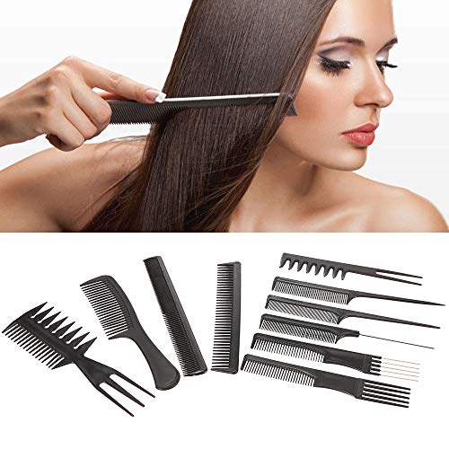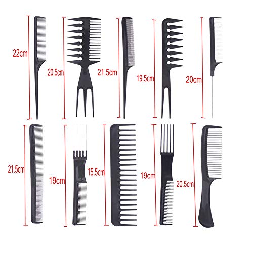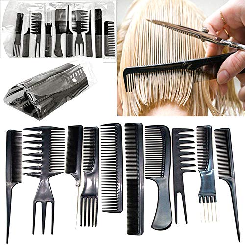 أمشاط احترافية لصالونات التجميل مجموعة من 10 أمشاط لتصفيف الشعر مضادة للكهرباء الساكنة + 4 مشابك شعر لصالونات التجميل ومصففي الشعر والحلاقين أسود من جيه زد كيه