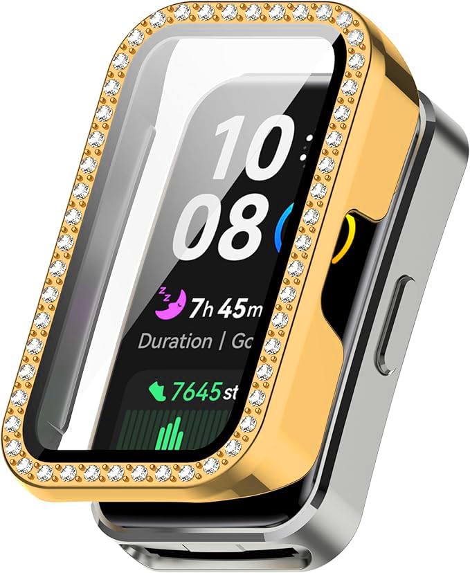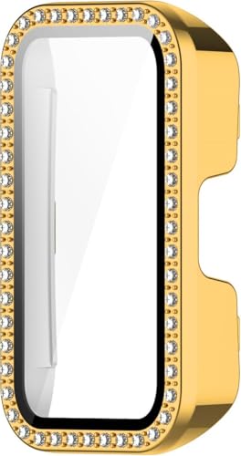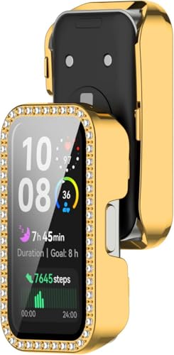 جراب لامع من في فولت مع واقي شاشة زجاجي - غطاء كامل مقاوم للصدمات والخدوش متوافق مع هواوي باند 8 - حواف صلبة وحماية شاملة للموبايل (ذهبي)