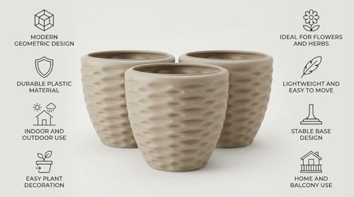 - 🌿 تصميم ديكوري عصري يتميز الأصيص بنقوش هندسية أنيقة تضيف لمسة جمالية للنباتات وتجعله قطعة ديكور مميزة داخل المنزل أو المكتب.