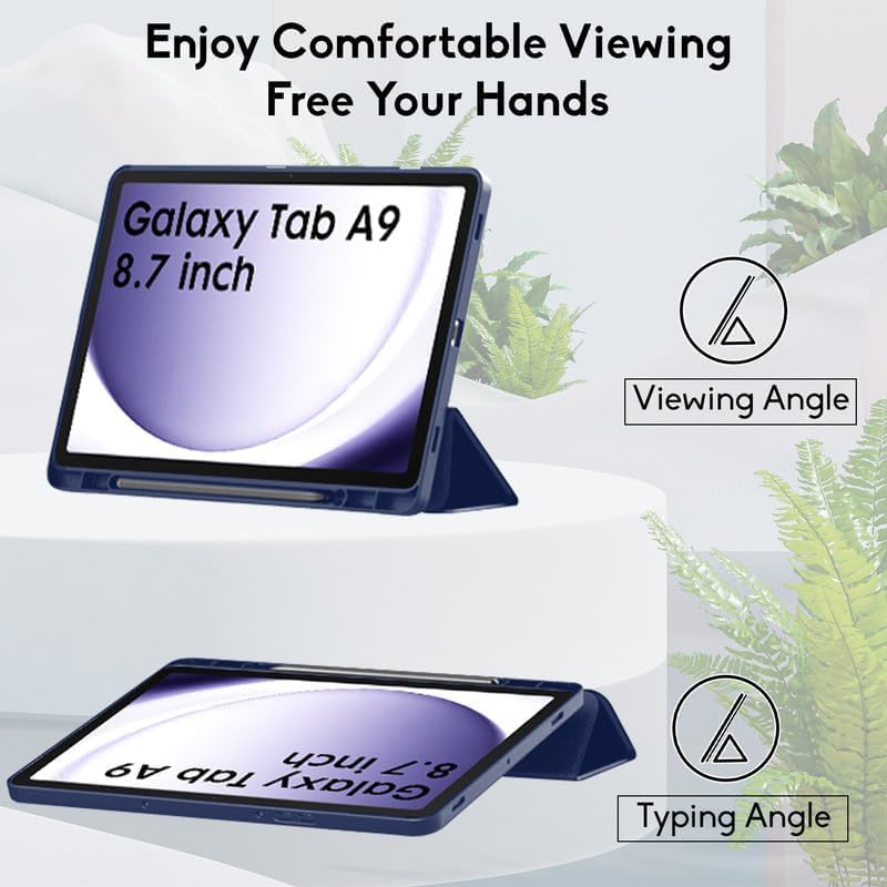 - 【زوايا حامل قابلة للتعديل】جراب أمامي ثلاثي الطي لجهاز سامسونج جالاكسي تاب A9 يتميز بإمكانية التحويل إلى حامل للمشاهدة وحامل كيبورد