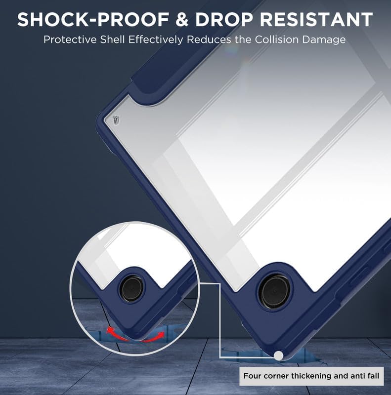 - 【مادة فاخرة】جراب خلفي صلب مع ممتص صدمات مرن من البولي يوريثين الحراري يحمي التابلت من الصدمات والسقوط والتأثيرات. يوفر الجزء الأمامي الداخلي المصنوع من المايكروفايبر الناعم حماية لجهز التابلت الخاص بك من الخدش. ويمكن أن يظهر الجراب الخلفي الشفاف لون التصميم الكلاسيكي لجهازك والشعار