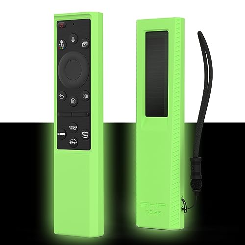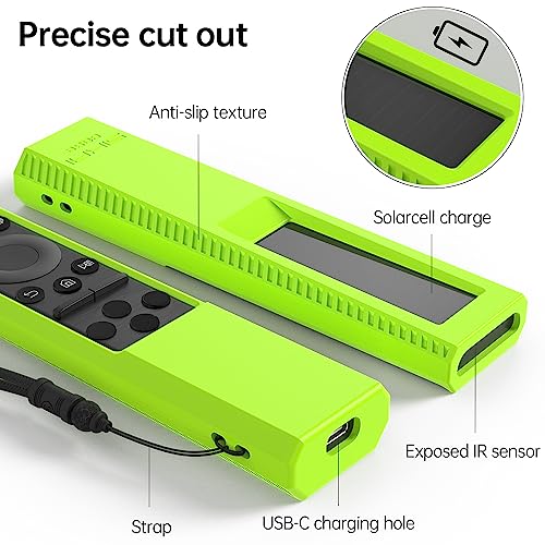 جراب من السيليكون لريموت كنترول يعمل بالخلايا الشمسية لتلفزيون سمارت سامسونج مضاد للصدمات والضياع مع حبل لسامسونج 2022 نيو سلسلة QN800B QN900B S95B QN90B Q80B Q60B موديل TM2280E اخضر لامع سيكاي