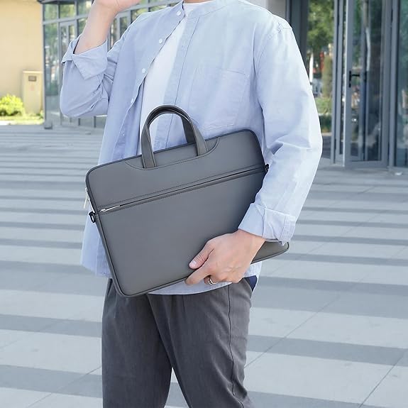 شنطة كتف رفيعة من الجلد الصناعي المقاوم للماء للاب توب مقاس 15.6 بوصة، حافظة لاب توب للحمل، شنطة للكمبيوتر والمراسلة
