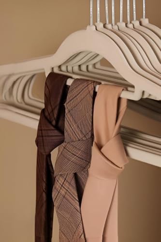 شماعات قطيفة فاخرة - معدن شديد التحمل بلمسة نهائية بنعومة القطيفة، تصميم مضاد للانزلاق للملابس والكرافتات، تحتوي على خطاف دوار ومشبك كرافتة صغير، مجموعة من 5 قطع لتنظيم دولاب الملابس (2 باكت 10 قطع)