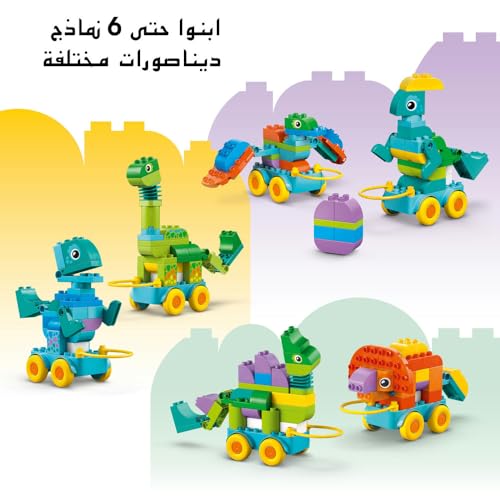 لعبة ديناصورات 3 في 1 على عجلات من ليغو DUPLO Town، لعبة تعليمية للأطفال للتعلم من خلال اللعب، مجموعة لعب مركبات إبداعية مع 6 نماذج قابلة للبناء، هدية إبداعية لأطفال الروضة بعمر 3 سنوات أو أكثر 10451