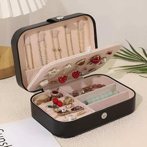مجوهرات جلدية - منظم سفر انيق وعملي مع مساحات تخزين للنساء، مثالي لتخزين القلائد والاقراط وغيرها