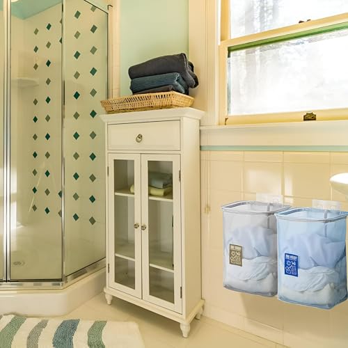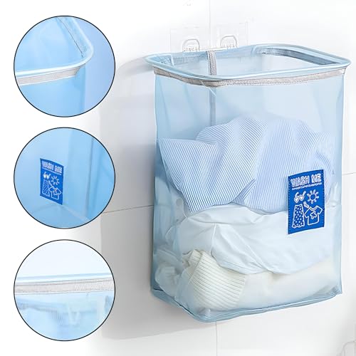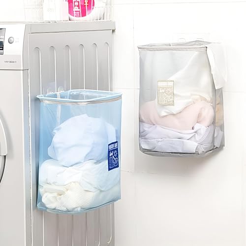 سلة غسيل شبكية - مثبتة على الحائط صغيرة الحجم ومريحة سلة شبكية قابلة للإزالة والطي، مثالية لتنظيم الملابس المتسخة في الحمامات وغرف النوم ومناطق خزانة الملابس