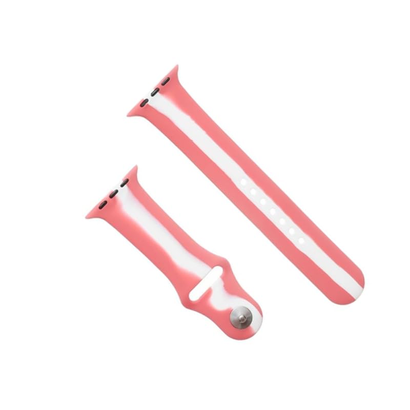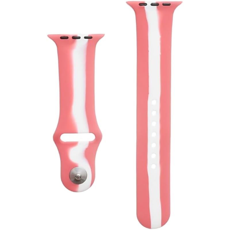 سوار معصم بديل من السيليكون القابل للتعديل بتصميم مخطط ناعم ومشبك معدني متوافق مع الساعات الذكية 42/44/45 ملم - لون وردي غامق/ أبيض