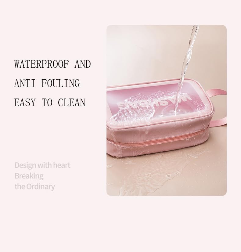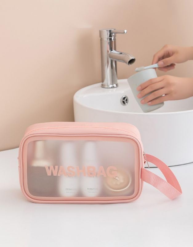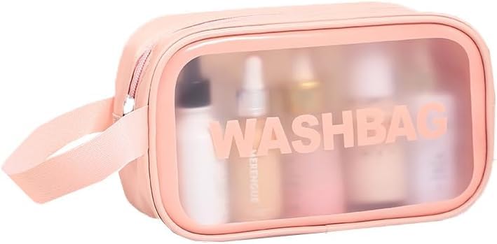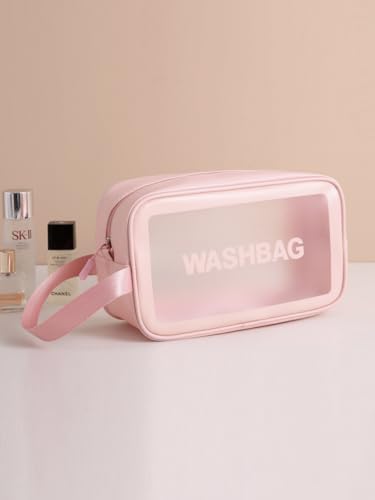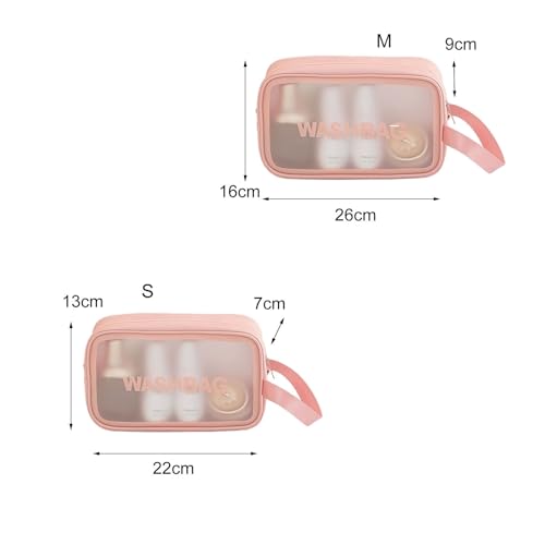 شنط شفافة لادوات الزينة للنساء للسفر، شنط مستحضرات تجميل معلقة طاردة للماء لمستحضرات التجميل في المطار (زهري، S)