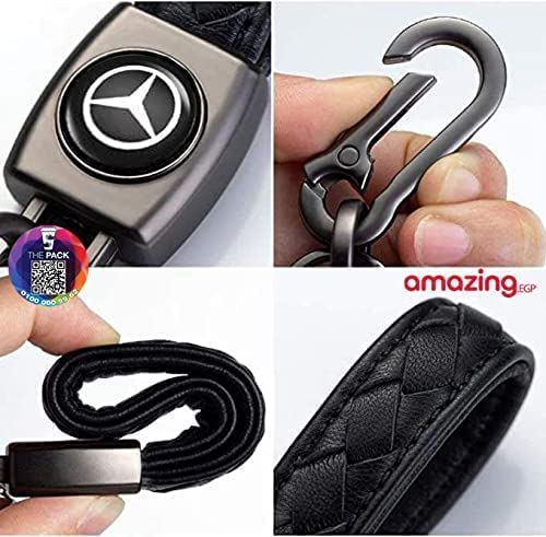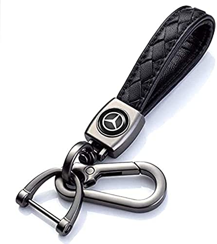 سلسلة مفاتيح مصنوعة من الجلد الطبيعي والمعدن مع شعار سيارة مرسيدس بنز ذا باك اكسسوارات زينة هدية للنساء والرجال لون اسود