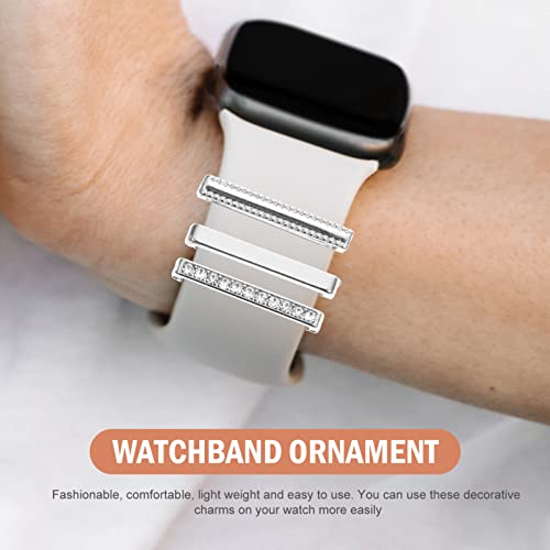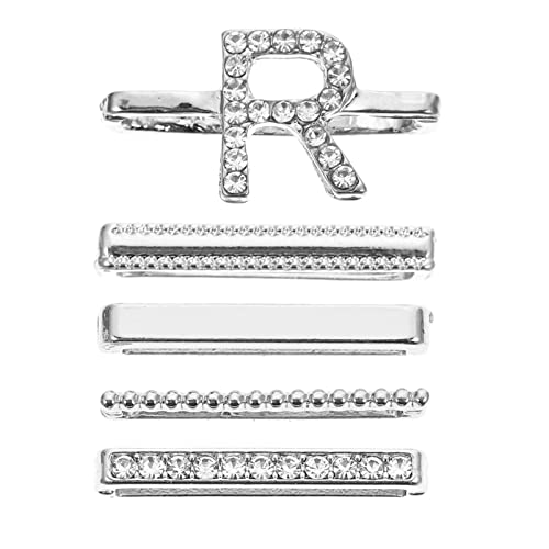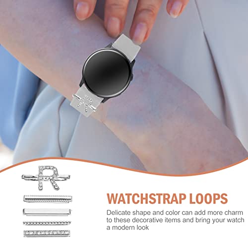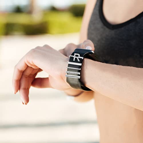 يوكي كوكو 5 قطع من سوار معدني متوافق مع خاتم الماس بتصميم حروف ابل ملم مجوهرات بلينغ قابلة للاستبدال مع اكسسوارات وحلقات سيليكون لتزيين الساعات الرقيقة