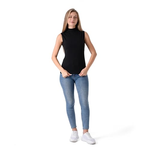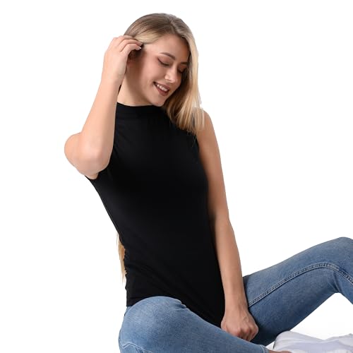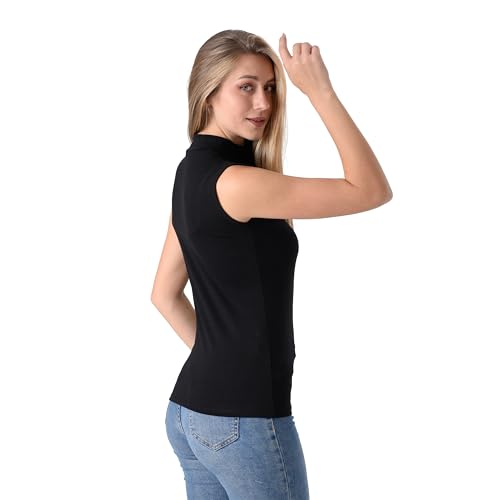 توب من القطن برقبة مرتفعة وقصة ملائمة لشكل الجسم للنساء من ميلك