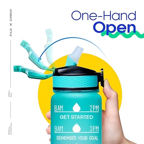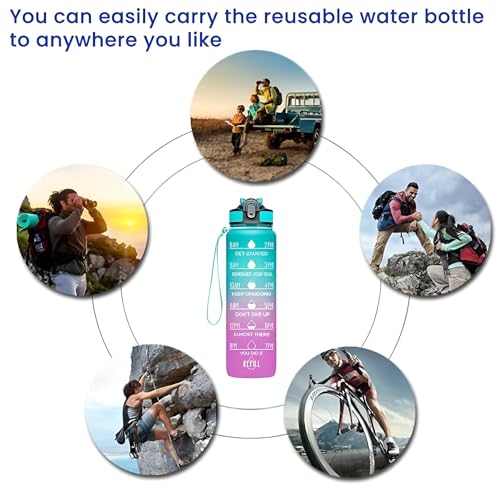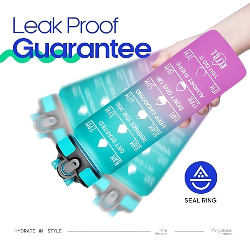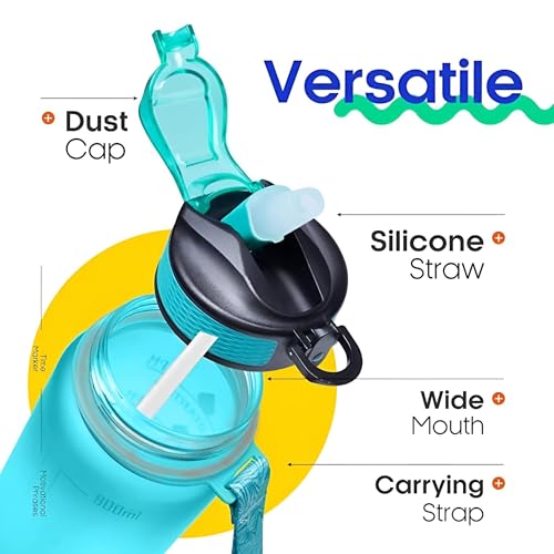 زجاجة شرب للمكتب - تصميم بلاستيكي نابض بالحياة سعة 1 لتر للياقة البدنية واليوجا والسفر والمدرسة والمنزل وصالة الالعاب الرياضية والاستخدام الخارجي