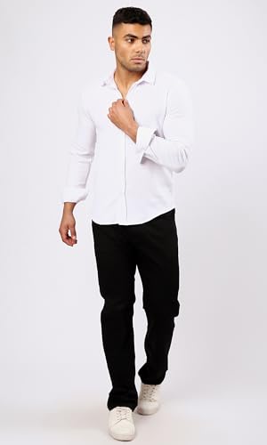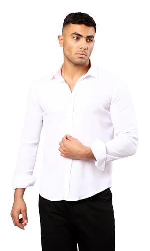 قميص أبيض بنمط ذاتي للرجال من ريفين، مع ياقة مطوية لأسفل حديثة