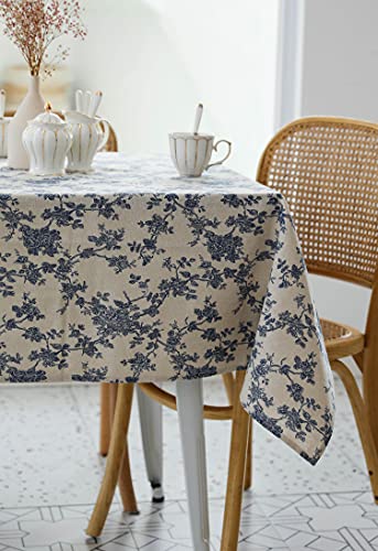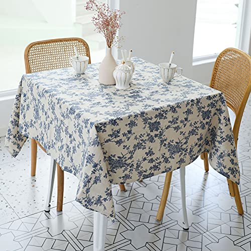 مفرش طاولة مربع بنمط ريفي من قماش الكتان، غطاء طاولة قابل للغسل ومقاوم للغبار والتجاعيد للمطاعم والنزهات وتناول الطعام داخل المنزل وخارجه، 1.32 × 1.32 م نمط زهور (أزرق غامق)