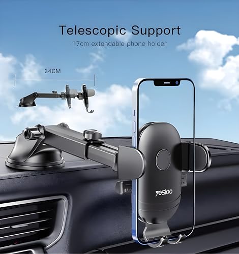 - [ذراع تلسكوبي قابل للتمديد:] : يمنحك الذراع القابل للتمديد حرية ضبط المسافة بينك وبين الهاتف بسهولة، ليكون في وضع الرؤية المثالي، ما يوفّر تجربة قيادة أكثر راحة وأمانًا.