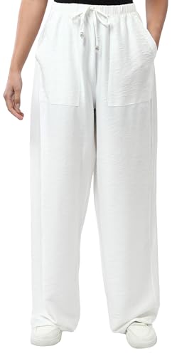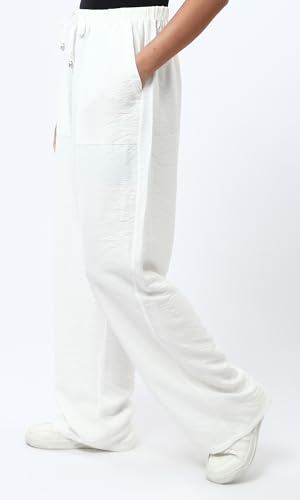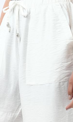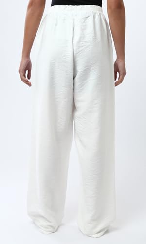 بنطلون عريض منسوج بأستك عند الخصر للنساء من ريفين، لون اوف وايت (أبيض)