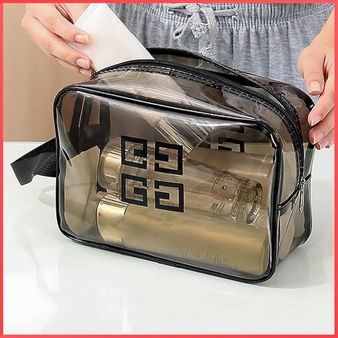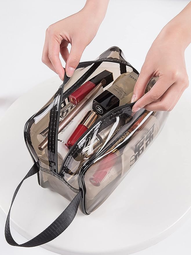 حقيبة مستحضرات التجميل الصغيرة من بلاستيك بي في سي لتخزين ادوات الزينة اثناء السفر، حقيبة مستحضرات التجميل، حقيبة مستحضرات التجميل، حقيبة سوداء