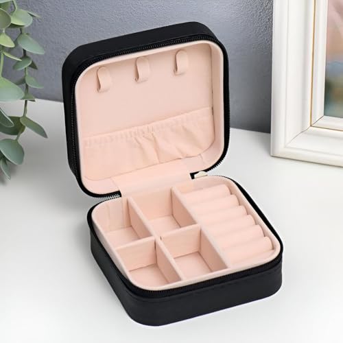 منظم أنيق - صندوق مجوهرات أنيق وعصري مثالي للتخزين الآمن وسهولة الوصول إلى الخواتم والأقراط والقلائد أينما تغامر بعد ذلك.
