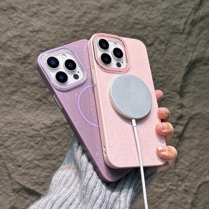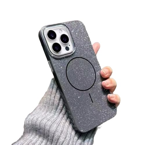 جراب حماية بلون سادة بتصميم بسيط ورفيع وبجليتر ومضاد للصدمات ومتوافق مع شاحن ماج سيف اللاسلكي لموبايل آيفون 12 برو ماكس، أسود